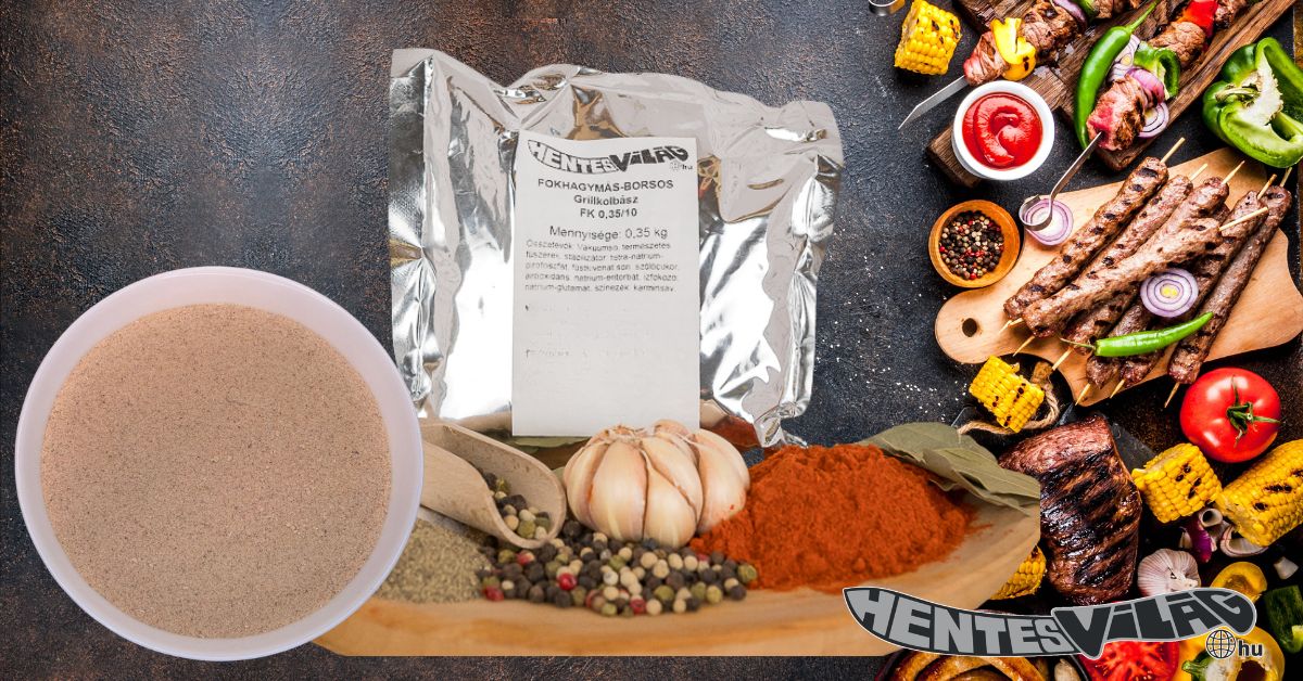 Összetevők: különleges fűszerpaprika őrlemény, fokhagymapor,vákuum só, természetes fűszerek, füst aroma són, tetra-nátrium-pirofoszfát, szőlőcukor, nátrium-glutaminát, nátrium-eritorbát. Felhasználási javaslat: 10 kg darált húshoz. A már bekevert masszához 1 liter hideg vizet kell adagolni. Ez fontos, hogy a sütésnél ne csapódjon ki a zsír és a kolbász szaftos maradjon. A keverék a kolbász elkészítéshez szükséges sómennyiséget tartalmazza! A fokhagymás grillkolbász hagyományosan vékony kolbász, így juhbélbe javasoljuk tölteni, de bármilyen vékonyabb (30/32 vagy 32/34) kaliberű sertésbélbe is nyugodtan tölthető. Az íze ugyanolyan finom marad, legfeljebb egy kicsit tovább kell majd sütni. Érdemes ezért több borral vagy sörrel készülni, esetleg egyéb fűszerkeverékeket is kipróbálni…