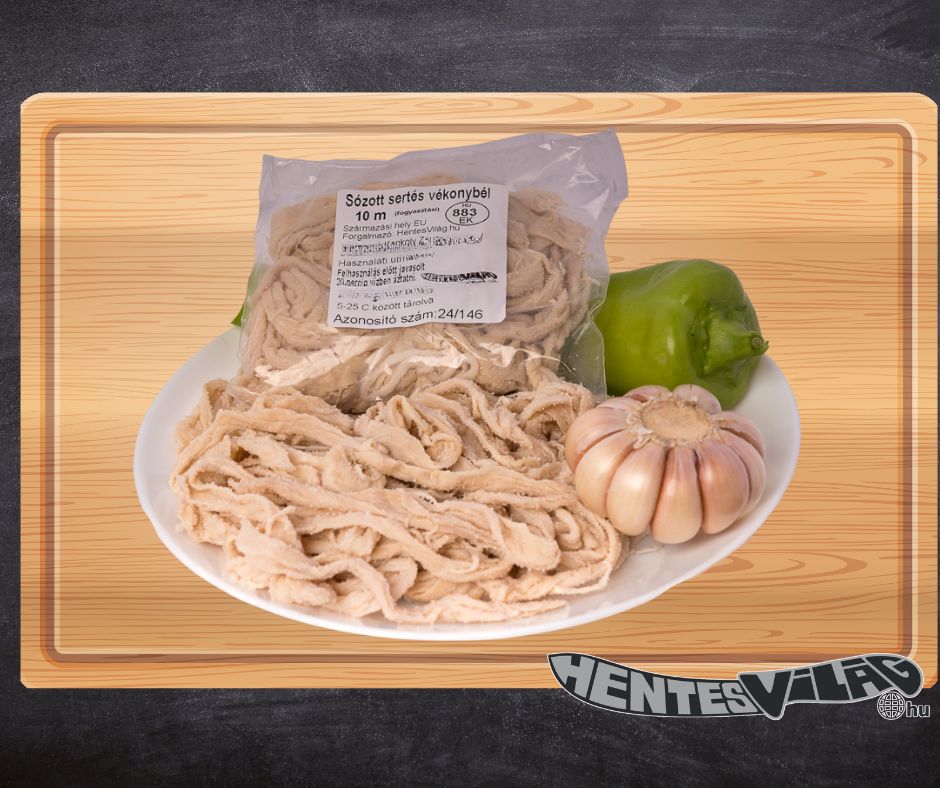 Felhasználás előtt kézmeleg vízben max.15-20 percig kell áztatni. Osztályozott sertés vékonybél színe lehet fehér, halványsárga, világos szürke, rózsaszín. A bél színe nem befolyásolja a minőségét! A sózott sertés vékonybél 10 méteres csomagban kapható ami 1-3 méteres szállakat tartalmaz